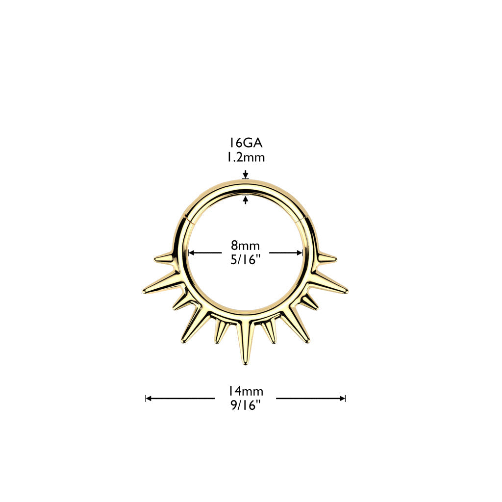 316L Surgical Steel Gold PVD Dainty Wide Flare Spikes Hinged Clicker Hoop