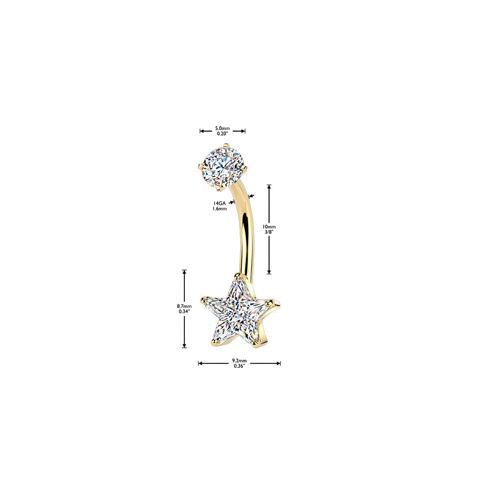 316L Surgical Steel Gold PVD White CZ Star Internally Threaded Belly Ring