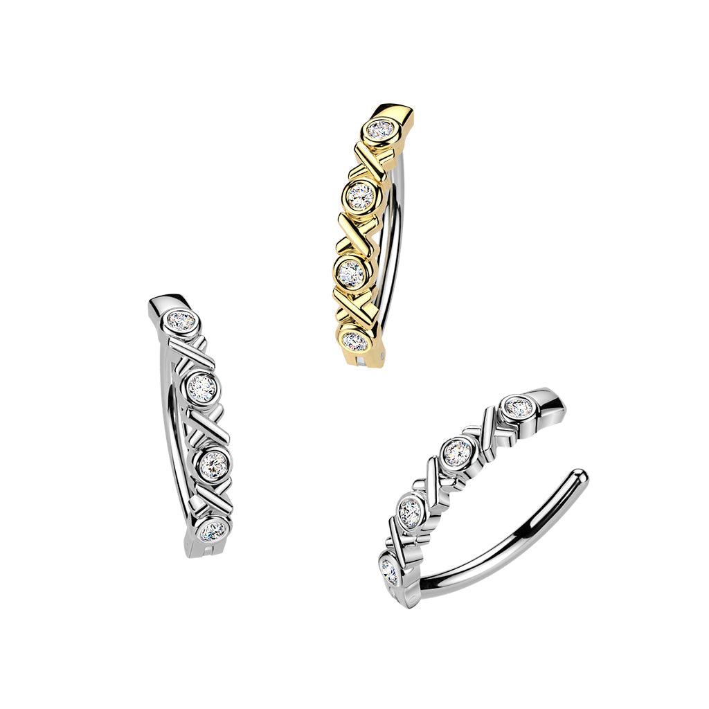 316L Surgical Steel Gold PVD White CZ "XOXO" Hinged Clicker Belly Ring