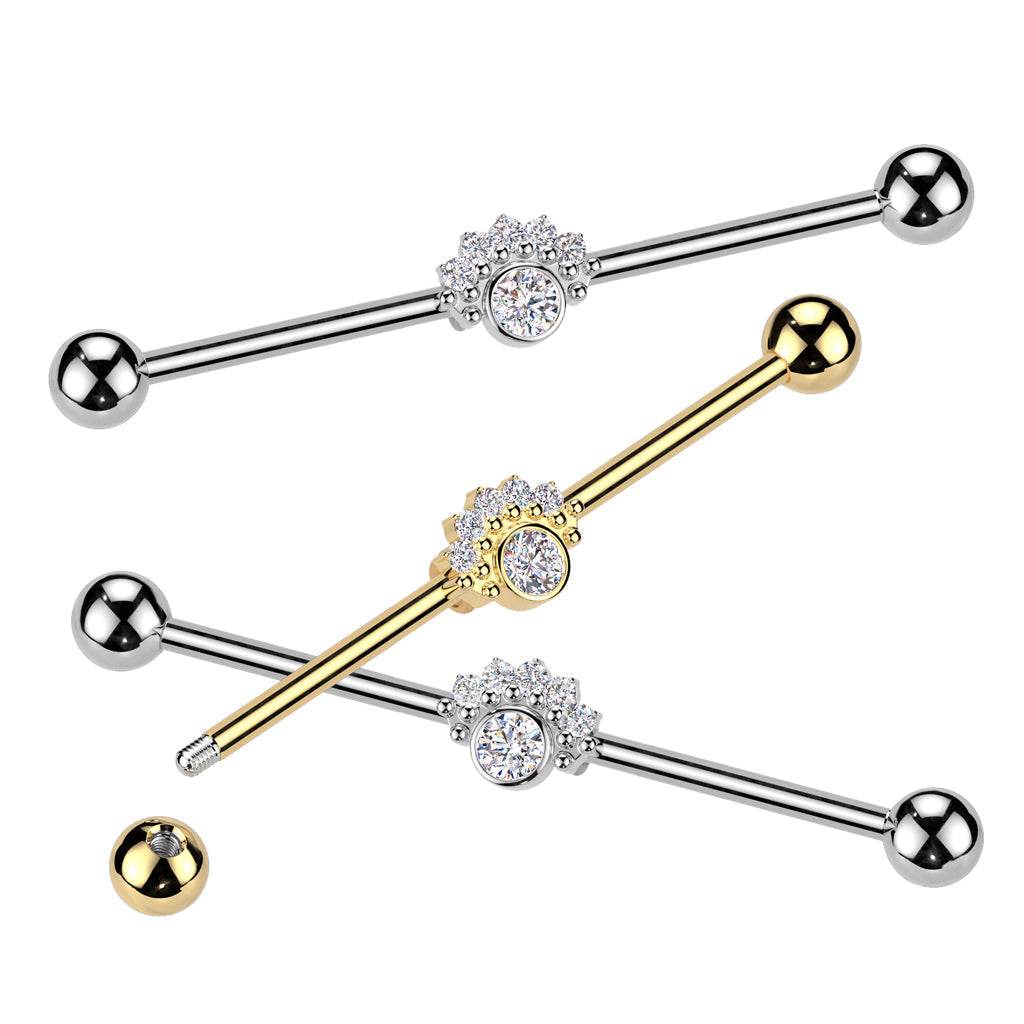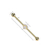 316L Surgical Steel Gold PVD White CZ Bezel Beaded Gem Design Industrial Barbell
