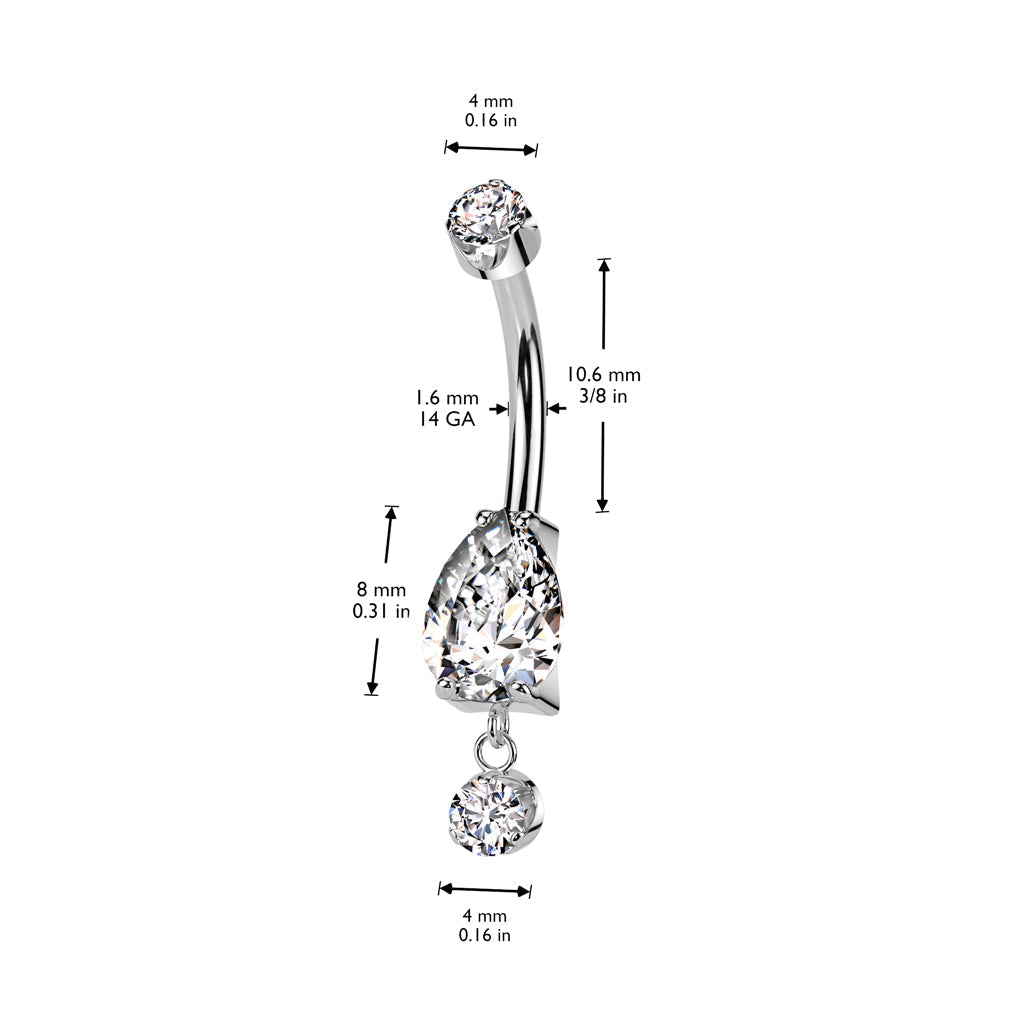 Implant Grade Titanium White CZ Teardrop Circle Dangle Belly Ring