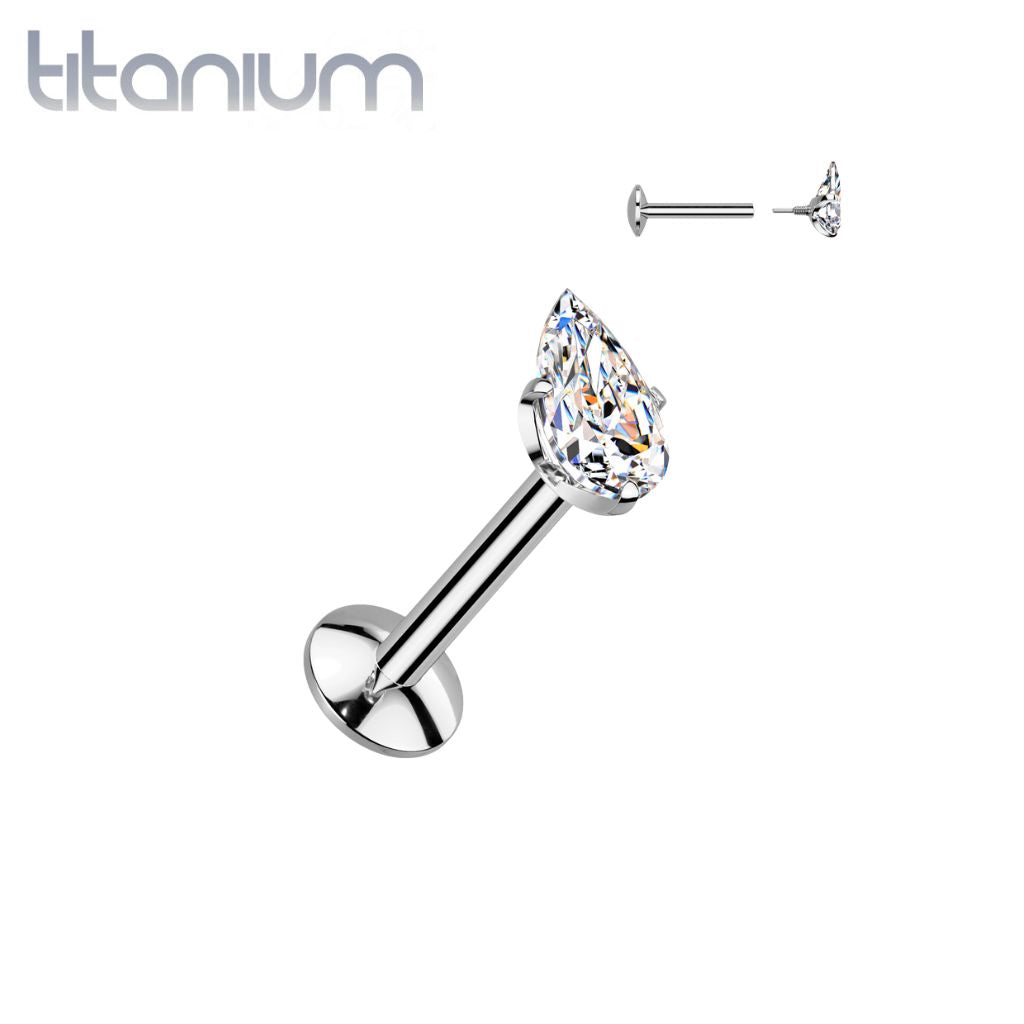Implant Grade Titanium White CZ Teardrop Shaped Internally Threaded Flat Back Labret
