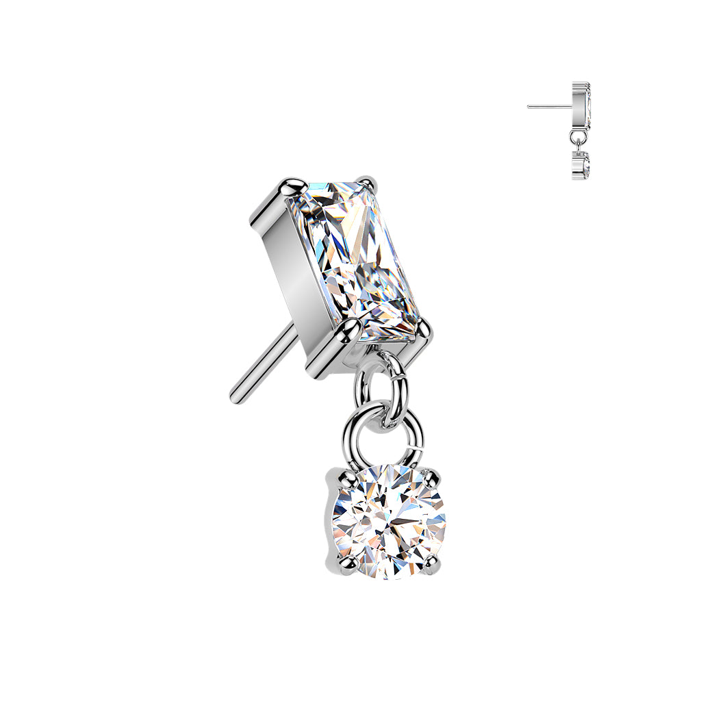 Titanium White CZ Baguette Gem With Dangle Threadless Top