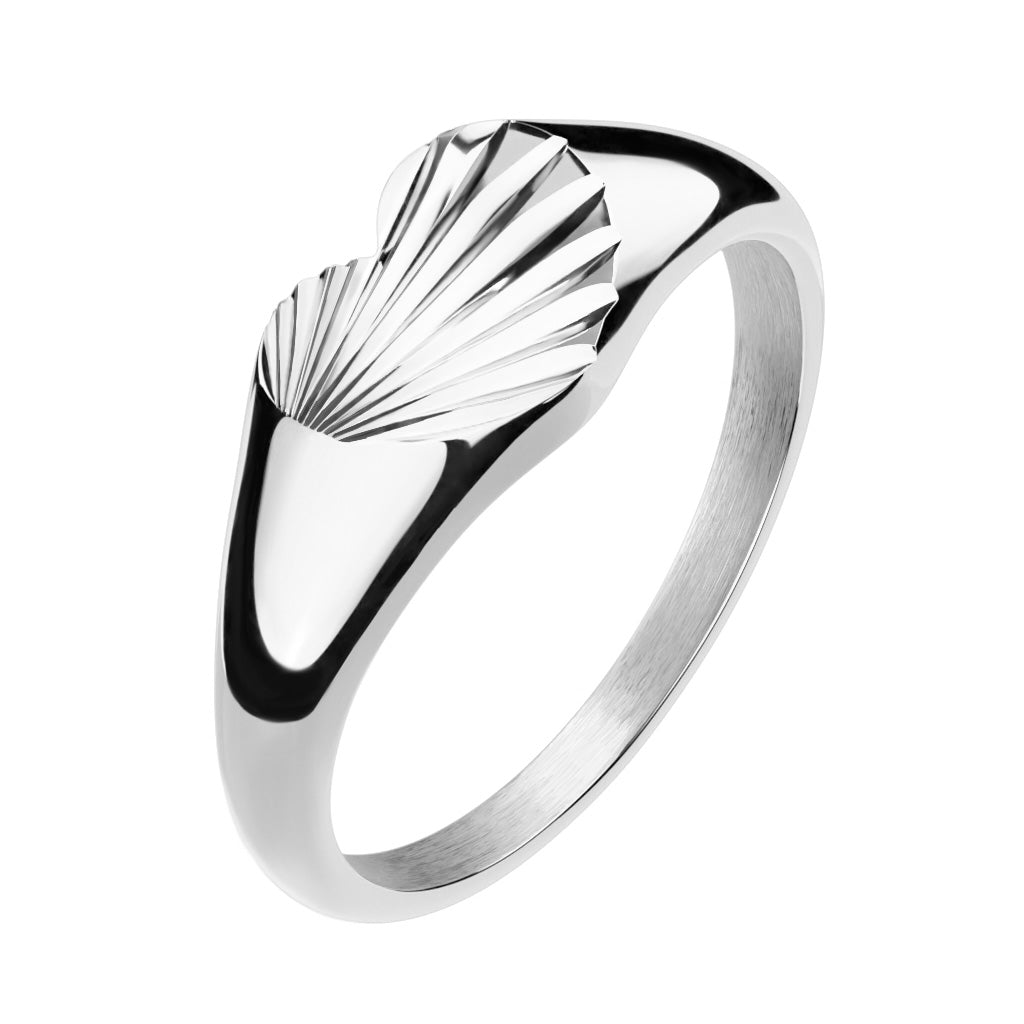 Stainless Steel Asymmetrical Starburst Engraved Signet Heart Ring