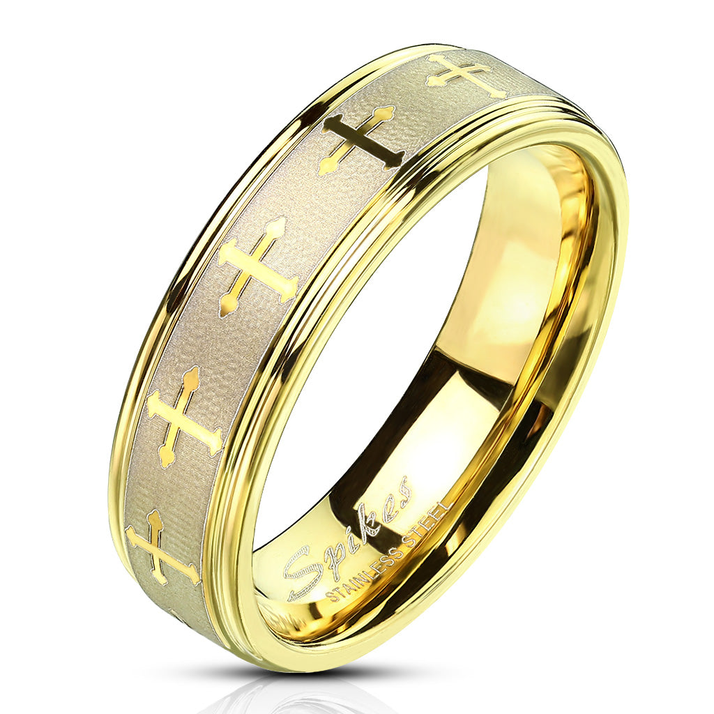 Stainless Steel Celtic Cross Gold Ring with Brushed Center Two Tone Ring